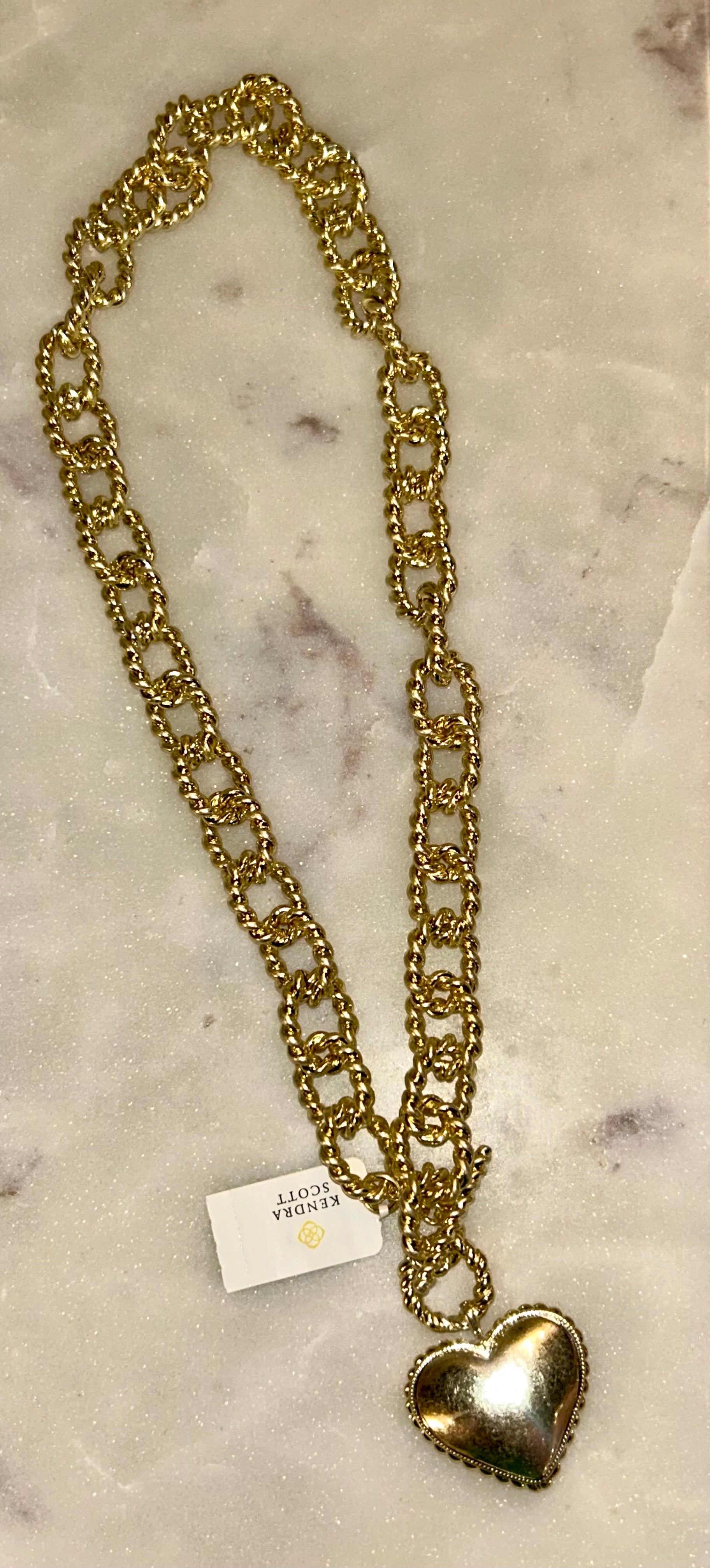 Radiate warmth and elegance with this gold-toned necklace featuring a bold, intricate chain and a heart-shaped pendant. Perfect for romantic evenings or adding a touch of glamour to your everyday look.